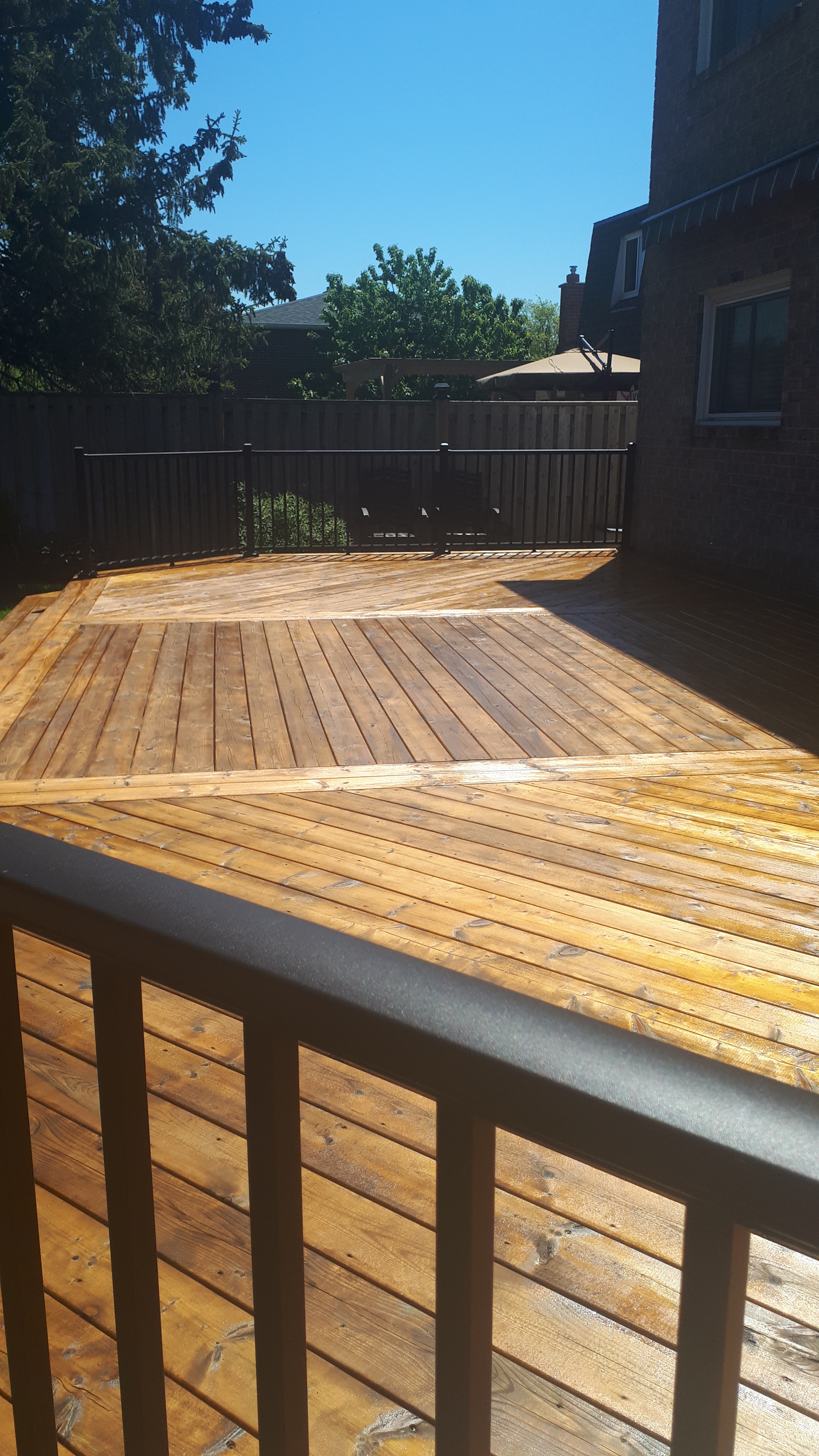 Ryan has been doing work around our house for the past few years. When we first built our deck several years ago he stained the deck as illustrated . Most recently he sanded our deck and refinished the deck and it looks amazing.